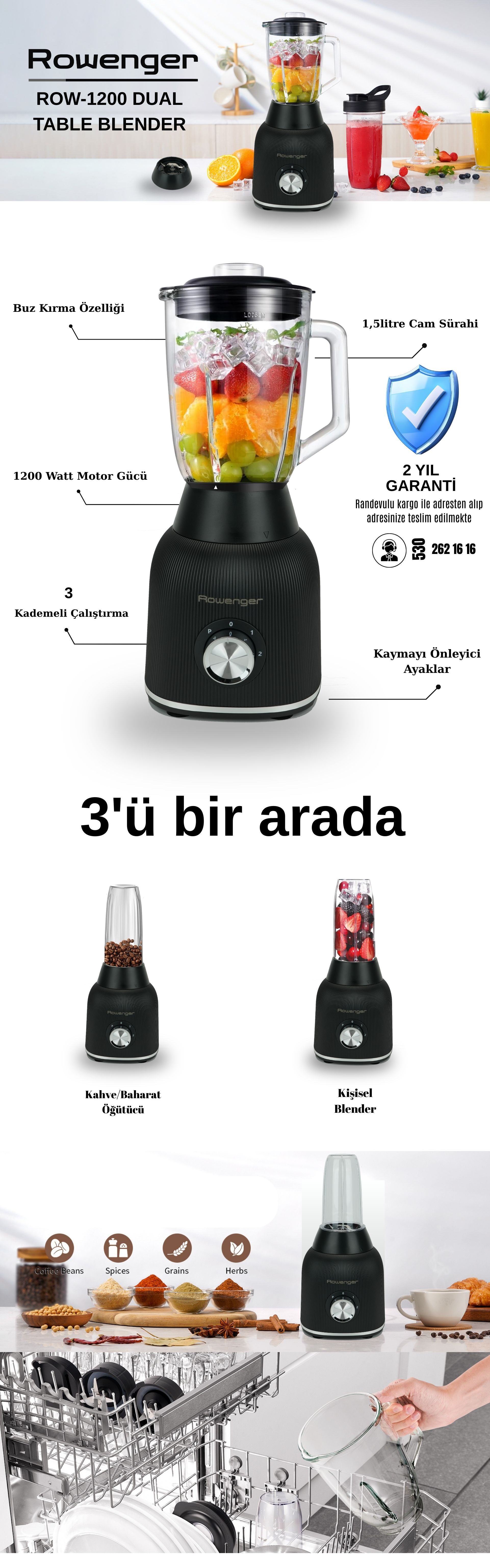 1200 watt gücüyle güçlü sunar, smoothie ve meyve suları hazırlamanız için idealdir.