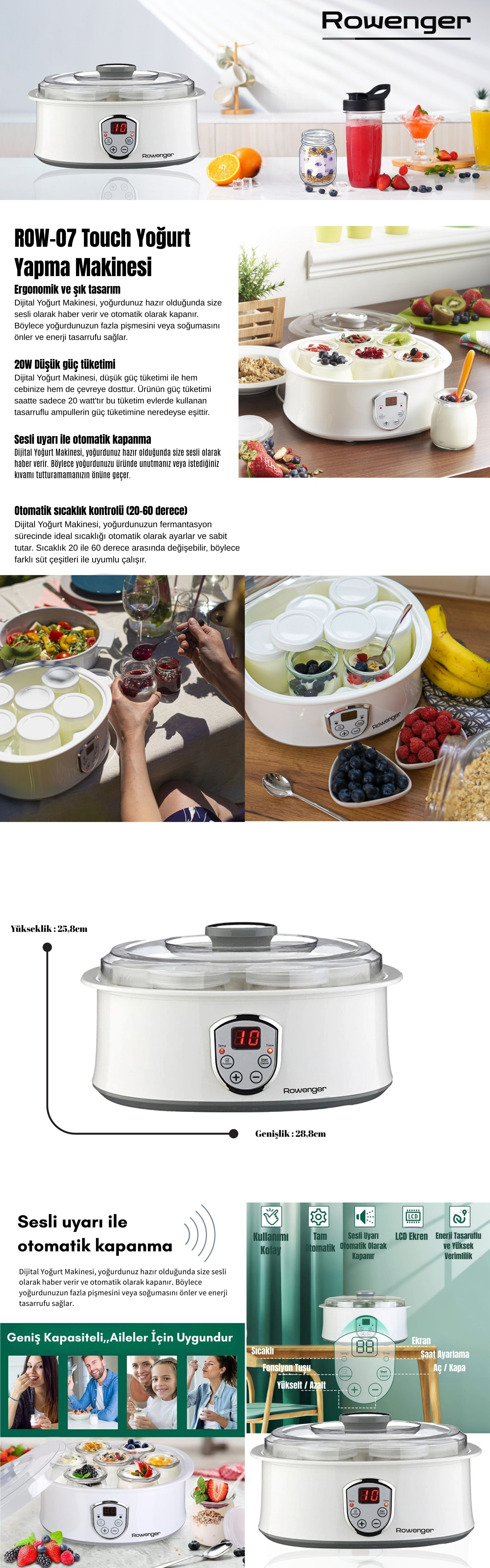 Rowenger ROW-07 Touch Dijital Yoğurt Makinesinin öne çıkan özellikleri şunlardır: