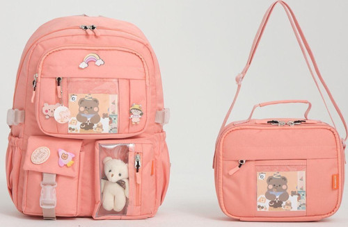 Roxbros Kawaii Kore Tarzı Aksesuarlı Ilkokul Sırt Çantası Kız Ve Isı Yalıtımlı Termoslu Beslenme Çantası Pudra