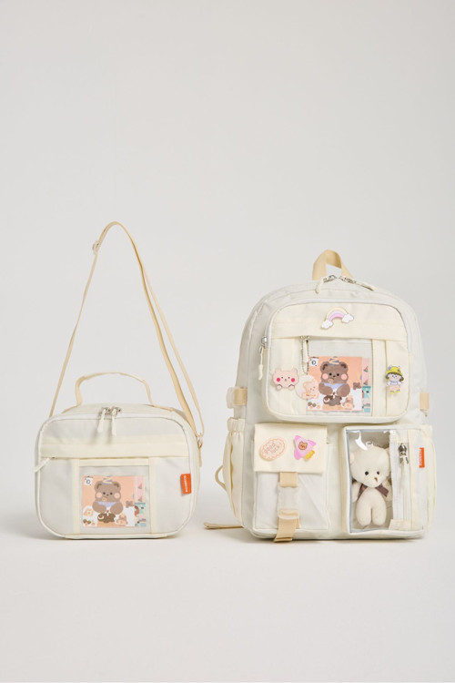 Roxbros Kawaii Kore Tarzı Aksesuarlı Ilkokul Sırt Çantası Kız Ve Isı Yalıtımlı Termoslu Beslenme Çantası Set