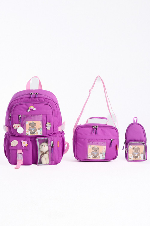 Roxbros Kore Tarzı Aksesuarlı 3'Lü Set Kız Çocuk Ilkokul Çantası Kalemlikli Beslenme Çantalı Sırt Çantası