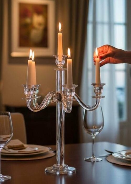 Yemek sofralarınızın, romantik akşamlarınızın şık bir temsilcisi olan mumlar, Roy King Kristal 7'li Şamdan 48 cm ile daha modern ve daha gösterişli olarak dekorasyonunuzda yerini alacak.