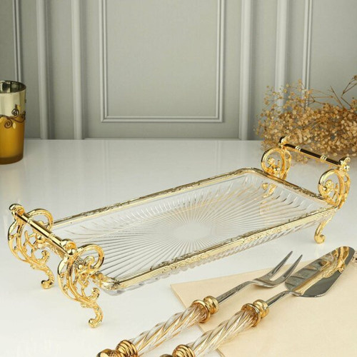ROYKİNG 37×20 cm Gold Ayaklı Cam Sunumluk – Dekoratif Servis Tepsisi