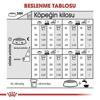 | Köpeğin kilosu | Evde yaşayan - 0 aktivite | - | Normal düzeyde hareketlilik | - | Çok hareketli | - |