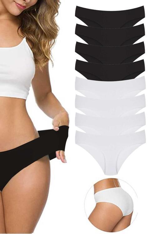8 Adet Kadın Dikişsiz Lazer Kesim Esnek İz yapmayan Külot Siyah Beyaz 1mm ince ve lazer kesim dikişsiz yapısı sayesinde Pantolon , günlük kıyafet ,gece kıyafetlerinizde iz yapmaz Ofis , gece daveti, seyahat, yolculuk ve dar kıyafetlerde gönül rahatlığıyla kullanabilirsiniz