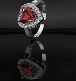 Roza Silver 925 Ayar Lal Taşlı Rodyum Pırlanta Işıltılı Kalp Ayarlanabilir Gümüş Yüzük - Image 1