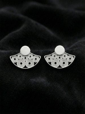Roza Silver 925 Ayar Elişi Telkari Gümüş Yuvarlak Desenli Yelpaze Çivili Küpe