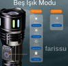 Güçlü, orta, düşük, SOS ve strobe olmak üzere 5 farklı aydınlatma modu bulunur.