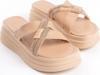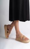 Ruby Düz Topuklu Taşlı Çapraz Şeritli Kalın Ve Ortopedik Taban Kadın Terlik - Tt Ten