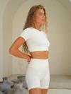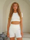 Kısa kollu crop tişört. Dayanıklı, nefes alabilen kumaş.