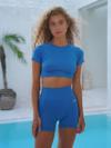 Kısa kollu crop tişört. Dayanıklı, nefes alabilen kumaş.