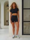 Kısa kollu crop tişört. Dayanıklı, nefes alabilen kumaş.