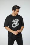 Baskılı Oversize Bisiklet Yaka T-Shirt