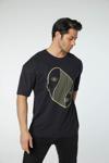 Baskılı Oversize Bisiklet Yaka T-Shirt