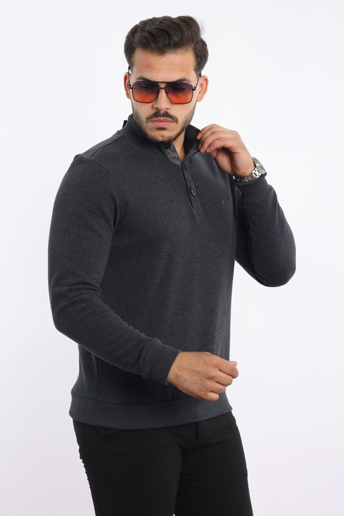 Rugatchi Pamuk Düz Selanik Dokuma Mont Yaka Sweatshirt Nefti