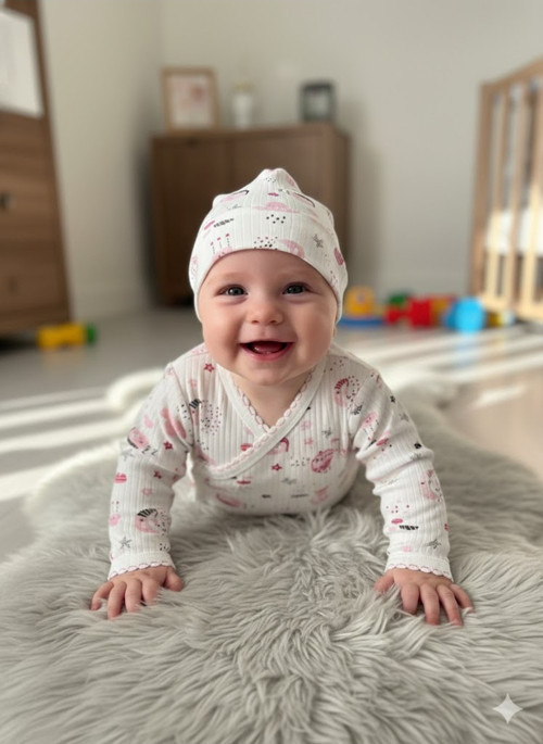 - Örme kumaş yapısı sayesinde esnek ve yumuşak bir dokunuş sunar, bebeğinizin cildine nazik davranır.