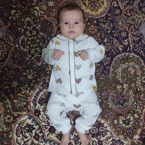 PETITE BABY LOVE NAKIŞLI ALT ÜST TAKIM - CARAMELL  - TKK2005 - Vizon - 9 - 12 Ay - TKK2005-Vizon-9 - 12 Ay Vizon - Image 1