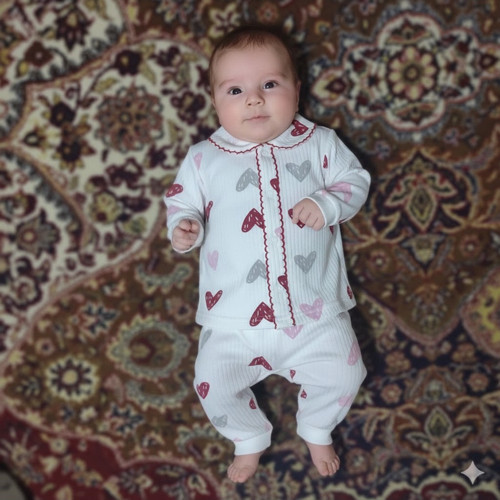 Ruhaay Bebek Unisex Baskılı Oya Detaylı Uzun Kollu Mevsimlik Alt Üst Takım