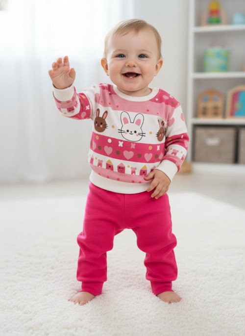 Ruhaay Çocuk Unisex Tavşan Baskılı Pamuk Uzun Kollu Mevsimlik Alt Üst Takım