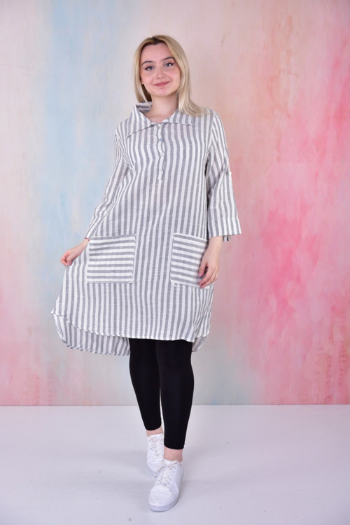 - Rahat kesimi ile günlük kullanım için ideal, çizgili desenli uzun kollu tunik.