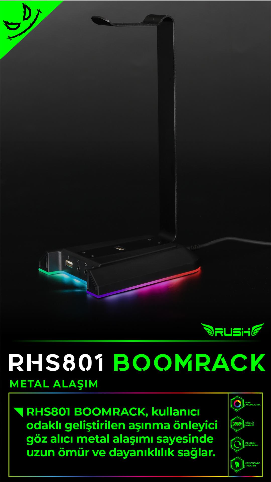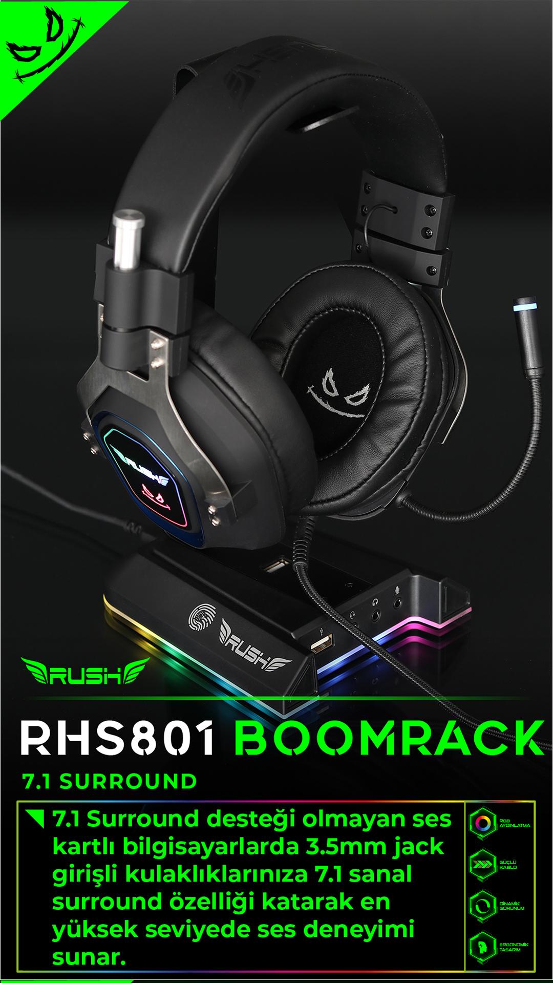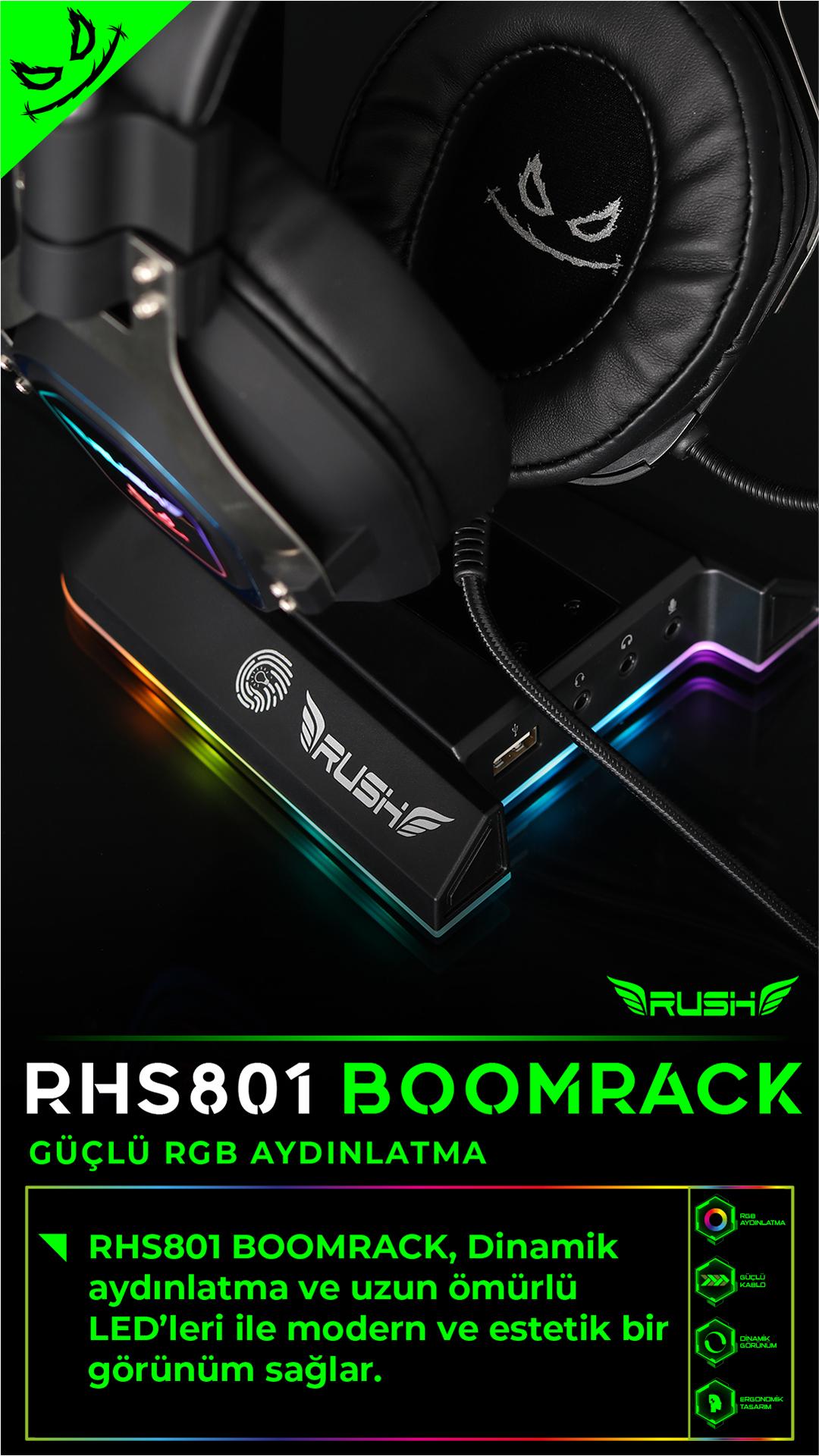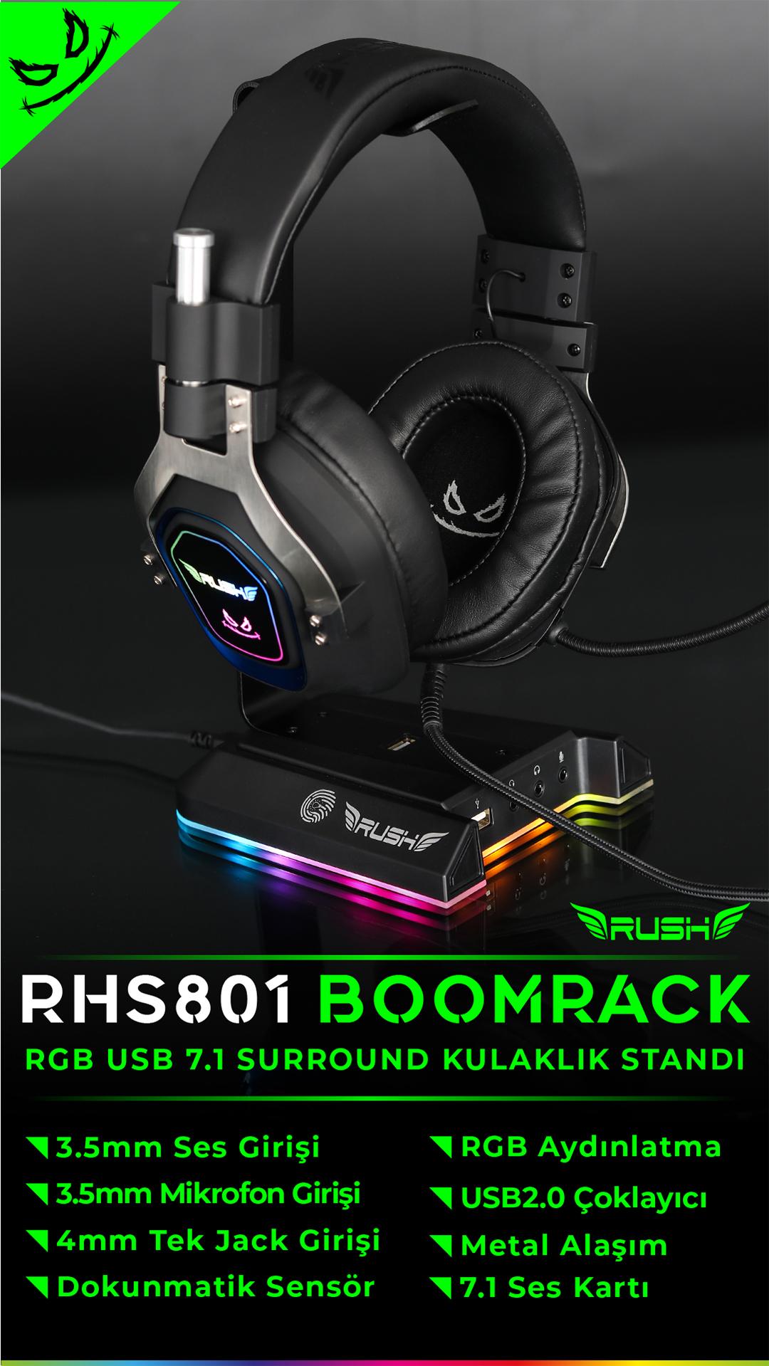 RUSH RHS801 BOOMRACK RGB USB 7.1 Surround Kulaklık Standı;