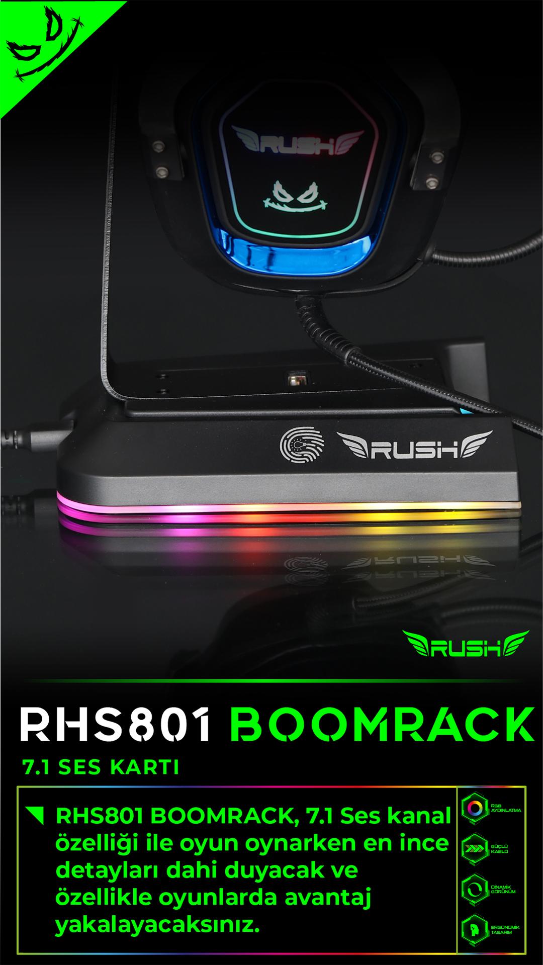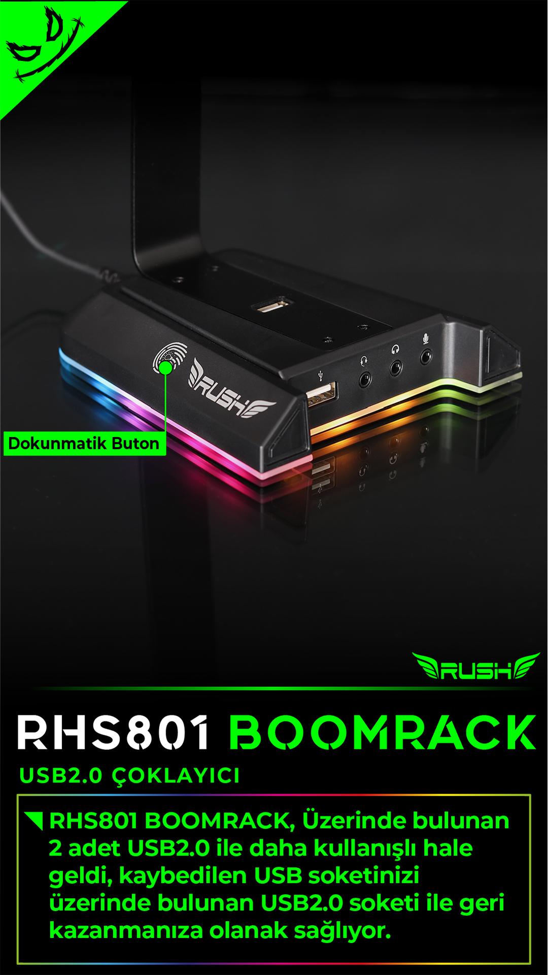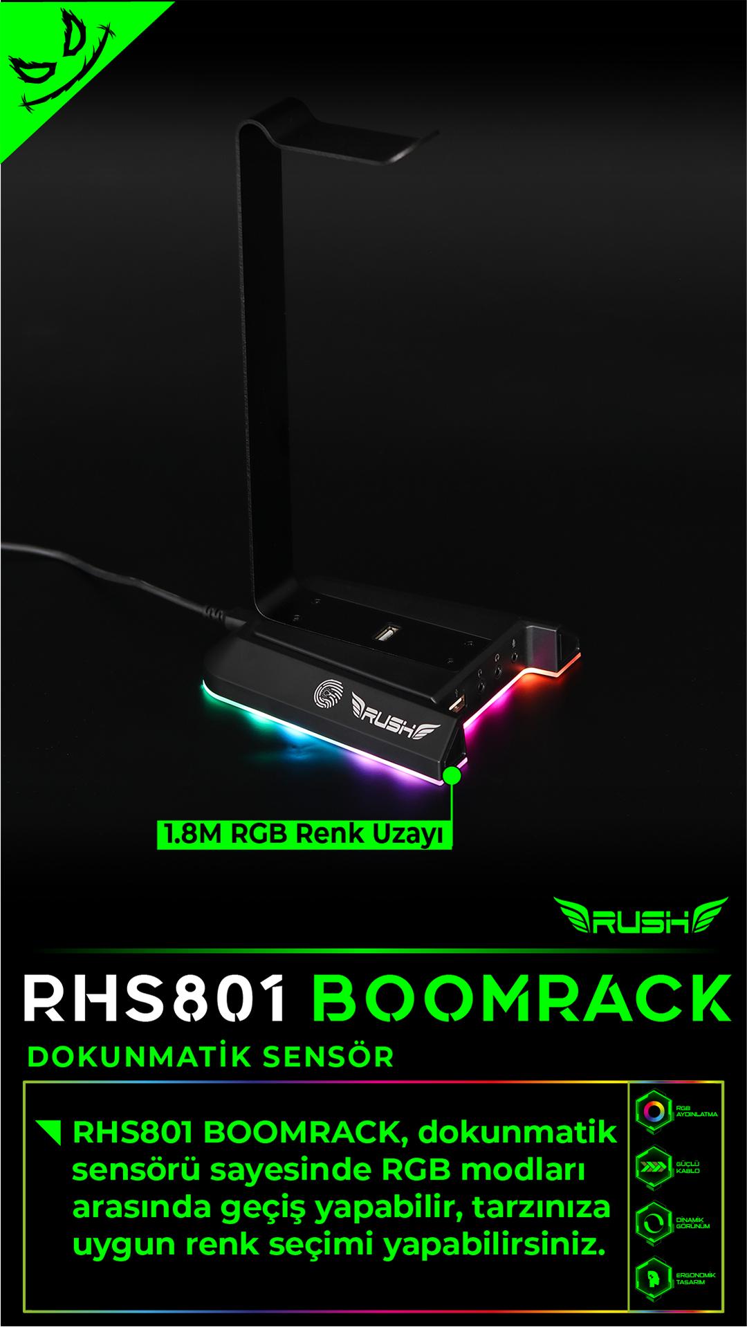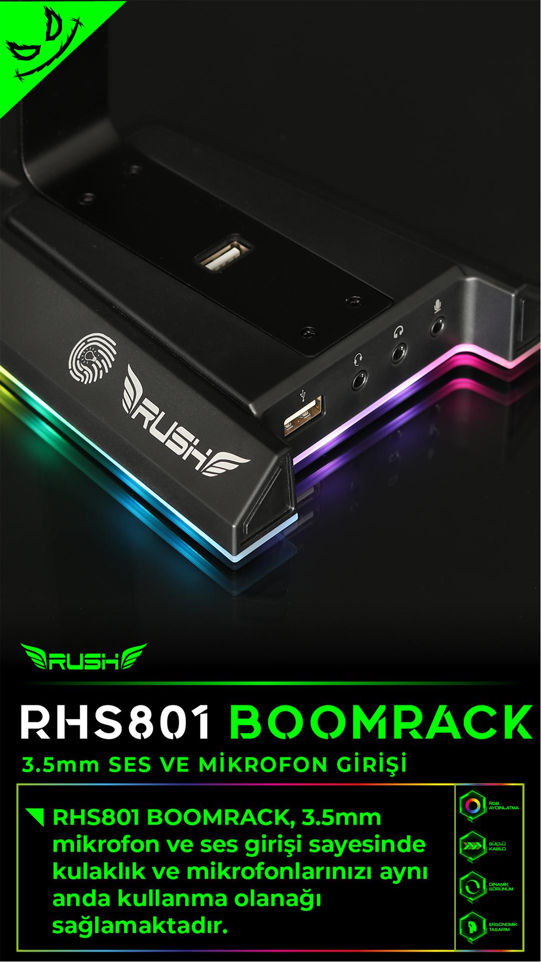 RUSH RHS801 BOOMRACK RGB USB 7.1 Surround Kulaklık Standı;