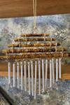 - Rüzgar çanı, esinti sarsıntı ile birlikte metal, tahta veya bambu çubukların birbirine çarpmasıyla huzur verici sesler çıkaran ve bahar/yaz aylarının bahçelerde, balkonlarda vazgeçilmezlerinden olan dekoratif eşyadır. Sesi kadar görüntüsü de uzakdoğu esintileri taşıyan bu rüzgar çanında çatı/tapınak figürü vardır. K oruma, güvenlik duygusu ile ilişkili olduğuna ve kutsal olduğuna inanılır. Feng Shui felsefesine göre de rüzgar çanlarının kapı, kiriş, sivri köşe, vb. yerlerde kullanımı negatif enerji akımını önler. Pozitif Chi enerjisi dolaşımı sağlar. ÜRÜN EBATI: 80 cm boy - Hasırlı silindir gövdenin çapı: 7 cm MATERYAL: Bambu, hasır ve metal sarkaçlar ÜRÜN ADEDİ: Fiyat 1 adet ürün içindir. BAKIM: Nemli bir bez ile silinebilir.
