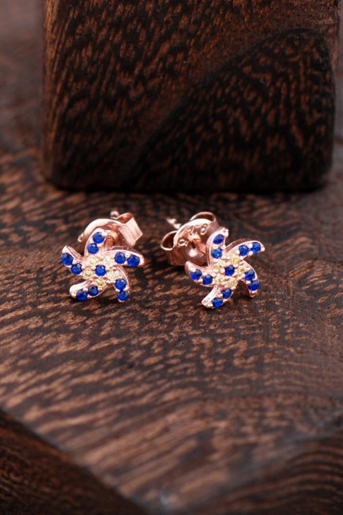Rüzgar Gülü Tasarımlı Rose Gümüş Küpe