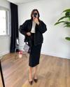 Mzp Kartan RYSE Kadın Mevsim Kaşe Fermuarlı Ceket Etek Takım Kaşmir Ceket Etekli İkili Takım Kaşe Bomber Ceket