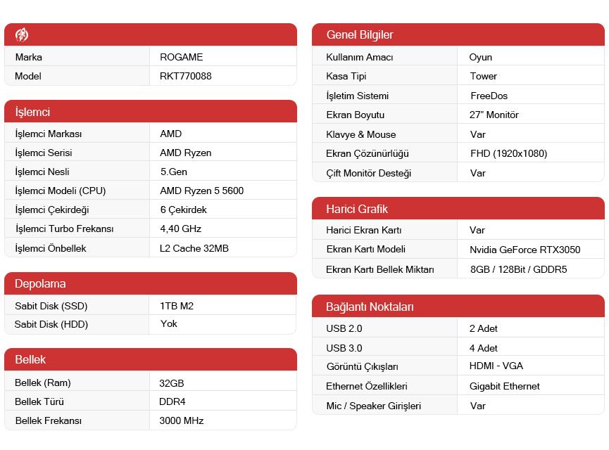 ROGAME MASAÜSTÜ OYUN BİLGİSAYARI