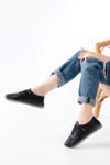 S-365 Siyah Desenli Hakiki Deri Şeffaf Taban Kadın Spor Ayakkabı