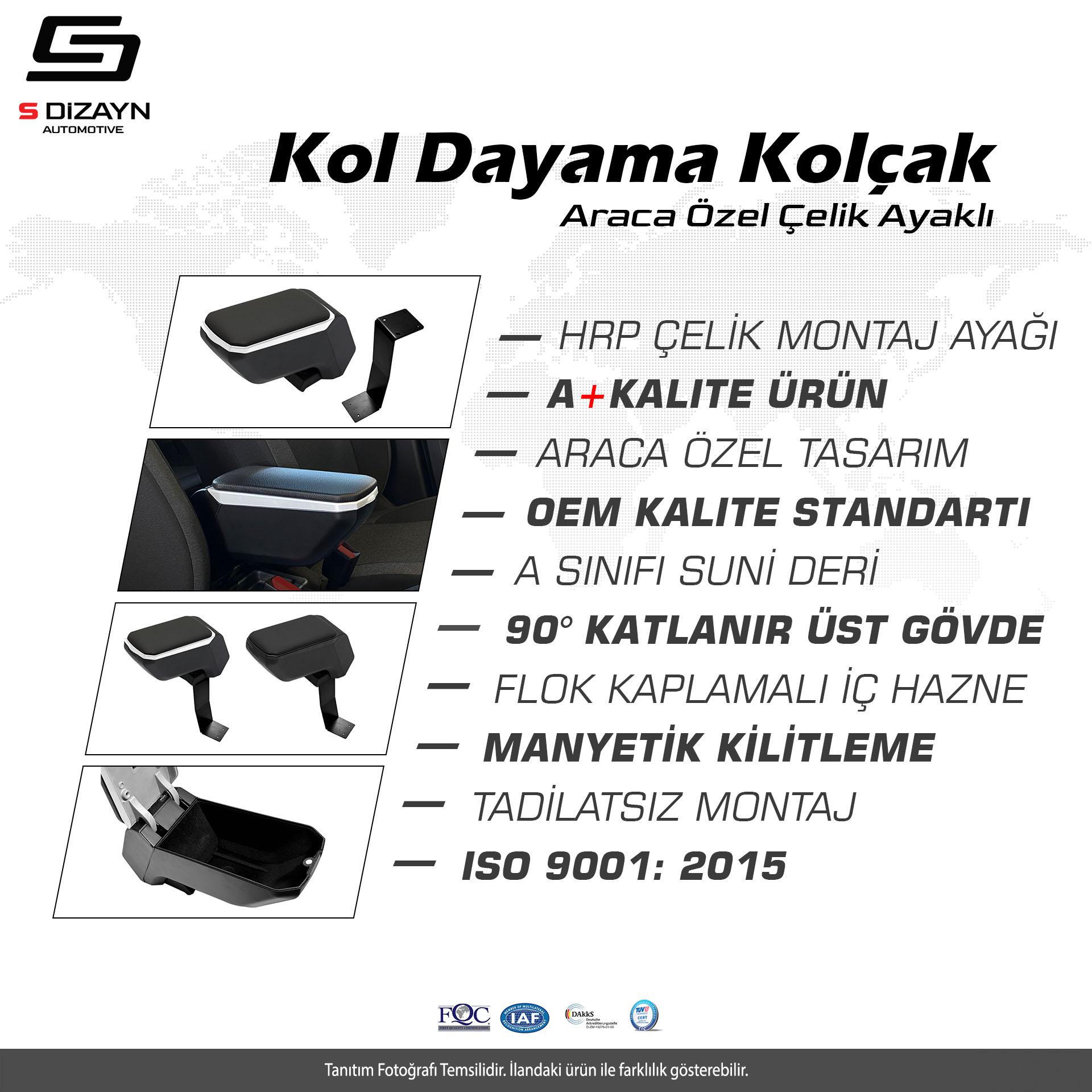 S-Dizayn Dacia Dokker Kol Dayama Kolçak Çelik Ayaklı ABS Siyah 2010 Üzeri A+Kalite