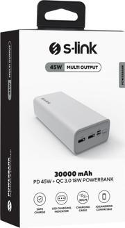 S-link G345 30000mAh 18W Beyaz Taşınabilir Şarj Cihazı Powerbank