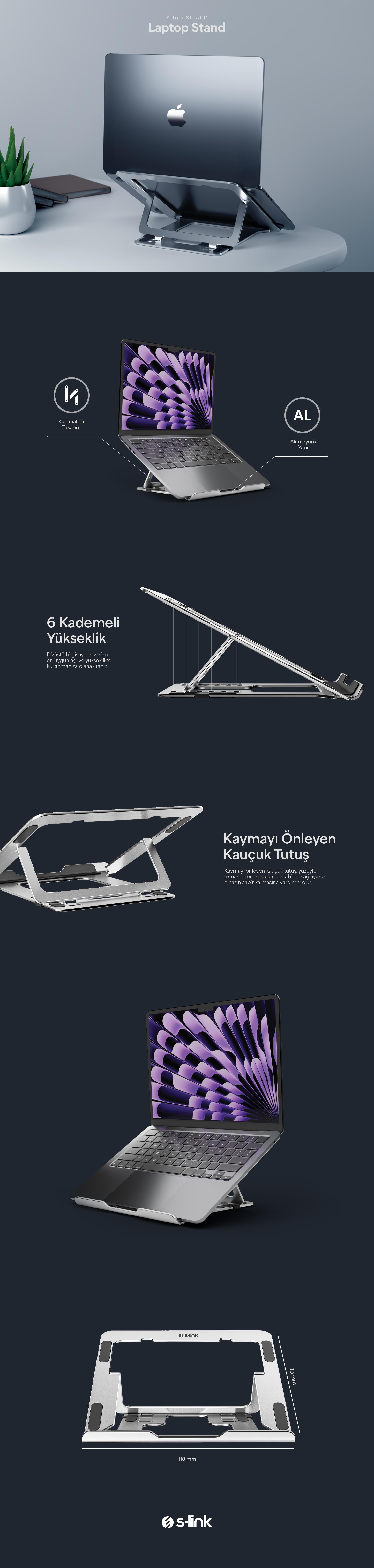 S-link SL-AL11 Gümüş 6 Açılı Katlanabilir Alüminyum Laptop Stand
