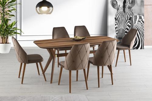 Sabit Eliz Masa Salon Masası Empoli Desen 6 Adet Hira Sandalye