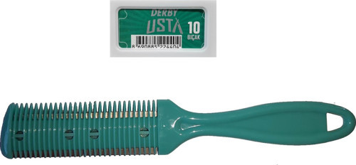 Saç Kesim Usturası -Jiletli Tarak Yeşil + 10 Adet Derby Jilet