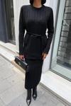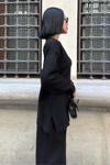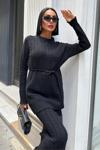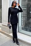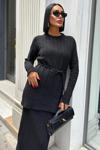 - Saç örgü deseniyle şıklığı ve rahatlığı bir arada sunan kuşaklı triko takım, günlük kullanım için idealdir.; - Siyah rengiyle zamansız bir tarz yaratan bu takım, her ortamda kolayca kombinlenebilir.; - Regular kalıbı sayesinde vücut hatlarınıza uyum sağlayarak konforlu bir deneyim sunar.; - Dokuma kumaşı ile dayanıklılığı artırırken, normal boy kesimiyle farklı vücut tiplerine uygunluk gösterir.; - Cool & comfort persona'sına hitap eden bu takım, casual ve günlük kullanıma uygundur; hem işlevsel hem de stil sahibidir.; - İki parçadan oluşan set (kazak-etek) ile pratiklik kazandırırken, tüm sezonlarda tercih edebileceğiniz çok yönlülük sunar.