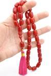 Saçaklı Püsküllü Kapsül Kesim Dev Boy Kırmızı Sıkma Kehribar Tesbih