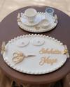 Kendi özel gününüzde ya da sevdiklerinize hediye olarak seçebileceğiniz bu ürün, sadece bir tepsi seti değil, aynı zamanda anılarınızı taşıyan bir parça olacak. Her detayında özen ve şıklığı hissedeceğiniz bu tasarım, unutulmaz bir sunum için idealdir.