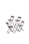 Mutfak masa 4 sandalye takımı Masa üst tablası hazır suntalam malzemeden üretilmiştir Masa alt metal bağlantısı 20*10 profilden 1,2 mm et kalınlığına sahiptir Sandalye katlanabilir olmasından dolayı kullanım alnını daha verilim sağlar Ürün 1 ad masa 4 ad sandalyeden oluşmaktadır Yerden yüksekliği kapalı dik halde 97 oturak alanı en :36 oturak alanı boy: 32 sırt dayama alanı en: 36 sırt dayama alanı boy: 17 cm dir.