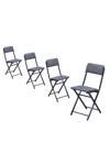 Paket içeriğinde 4 adet katlanır sandalye bulunduran bu sandalye grubunun gövde kısmı siyah ve üst bölümündeki keten kumaş kaplamalar gri renkten oluşur.
