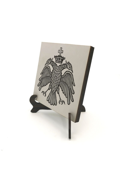 Bizans Kartal LogosuBaskılı MDF Masaüstlük Ürünümüz yaklaşık olarak 10cm x 10cm ebatlarında ve 100 gram ağırlığındadır. Ahşap MDF malzemeden üretilmiştir ve baskı teknolojisi çok özeldir.