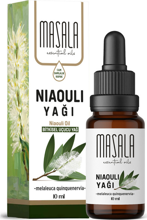 Masala Nioli Yağı 10 ml. (Niaouli Oil) Elde Ediliş Şekli: Damıtılmış Buhar Özellikleri :Dengeleyici, tazelik verici. Uyumlu Yağlar :Fesleğen , Cajeput , Okaliptüs , Rezene , Ardıç , Lavanta , Limon , Misket Limonu , Mersin , Portakal , Çam , Biberiye , Nane , Çay Ağacı ve Kekik . Niaouli Esansiyel Yağı, esnek bir gövdeye, süngerimsi bir kabuğa ve sapsız çiçeklerin sivri uçlu sivri yapraklarına sahip, yaprak dökmeyen bir ağaçtan gelir.