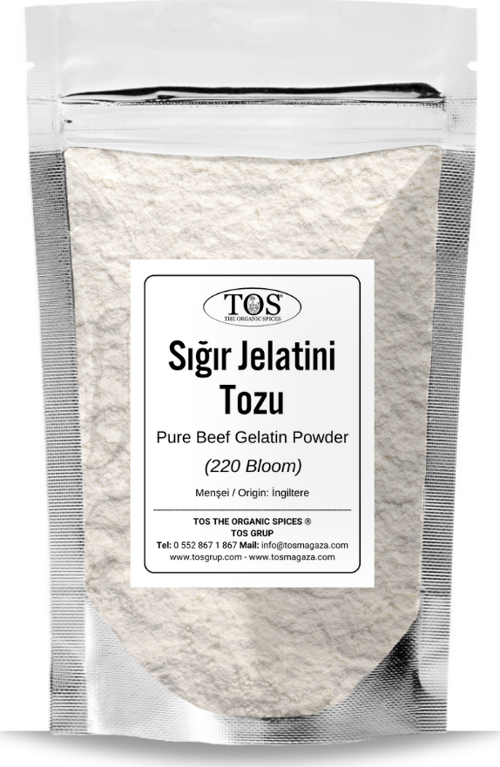 Saf sığır jelatini tozu, sığır kemikleri, derisi veya kıkırdağı gibi hayvan kaynaklı hammaddelerden elde edilen bir gıda katkı maddesidir. Jelatini, hayvanların bağ dokularından elde edilen bir protein türüdür ve suda çözünebilir özelliktedir.