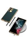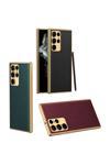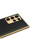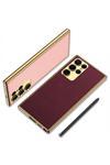 Safa Galaxy S23 Ultra Uyumlu Deri Görünümlü Kenarları Elektroplating Kaplama Zore Fizyon Kılıf-Kı