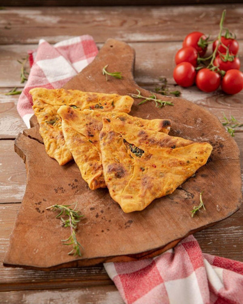 - Hatay bölgesine özgü lezzetlerin buluştuğu bu üçgen ispanaklı börek, odun ateşinde pişirilerek doğal bir tat ve doku sunar.