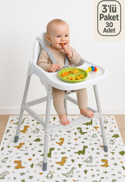 Safemom Su Geçirmez Kağıt Aktivite Örtüsü - Mama Sandalyesi Örtüsü - 3'Lü Paket - 30 Rulo - 100X120 Cm