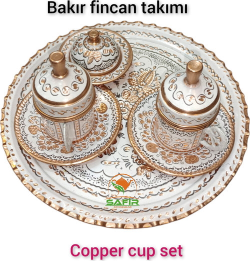 Safir Çay Kazanları Beyaz Bakır Kahve Fincan Takımı Bakır Kahvelik 2 Kişilik Bakır Kahve Fincan Takımı Beyaz Hicivli
