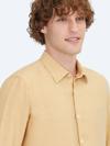Kip Safran Çizgili Regular Fit Dokuma Casual Gömlek
