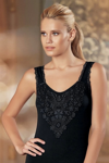 Beruflic markasının şıklığı ve konforu bir araya getiren güpürlü likralı atleti, zarif tasarımıyla dikkat çeker.
